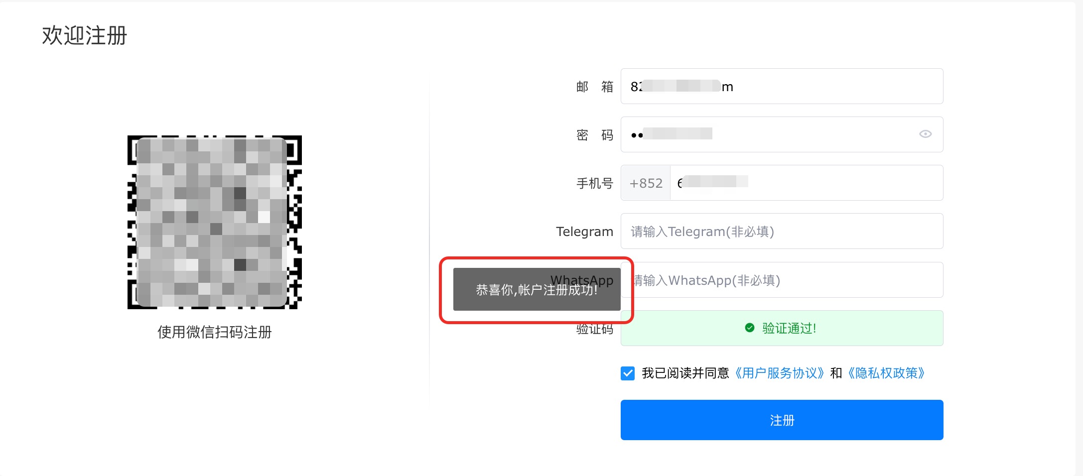 三、注册成功